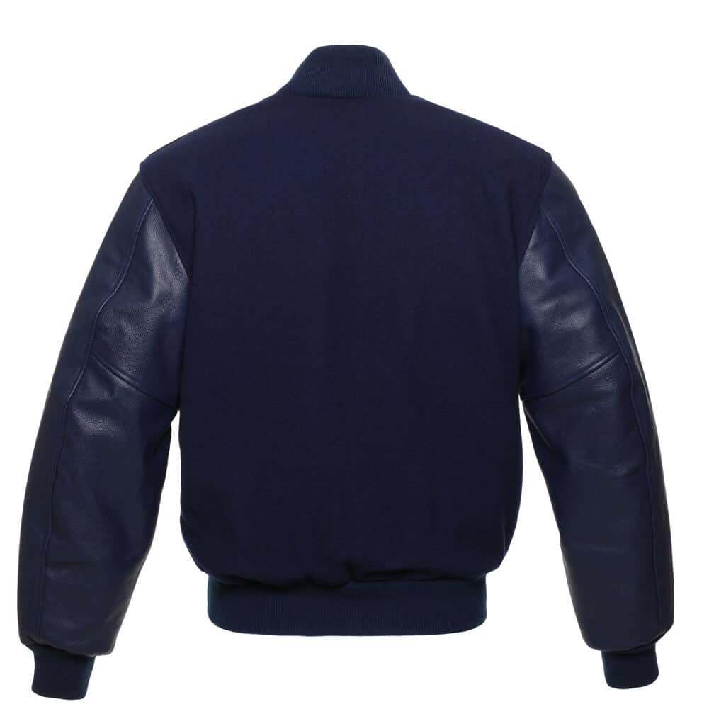 Veste Letterman bleu marine unie avec manches en cuir